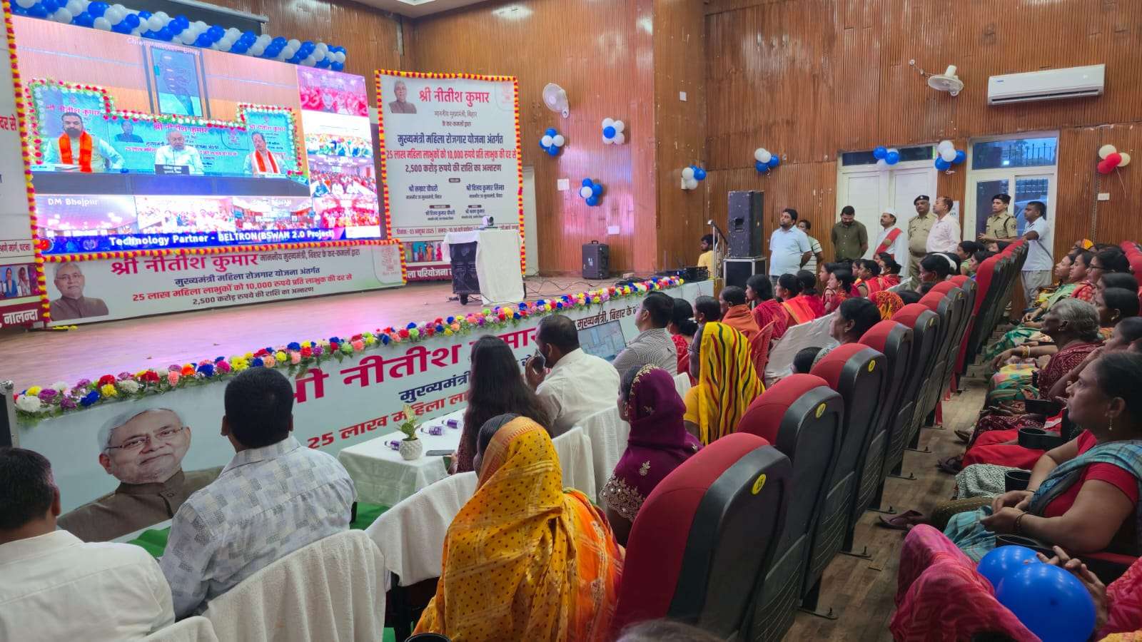 @ख़बरें Tv: आज दिनांक 03 अक्टूबर 2025 को माननीय मुख्यमंत्री श्री नीतीश कुमार जी के कर कमलों द्वारा मुख्यमंत्री महिला रोजगार योजना अंतर्गत 25 लाख महिला लाभुकों को ₹10,000 प्रति लाभुक की दर से ₹2,500 करोड़ की राशि का अन्तरण कार्यक्रम का सीधा प्रसारण टाऊन हॉल, बिहारशरीफ में आयोजित किया गया।