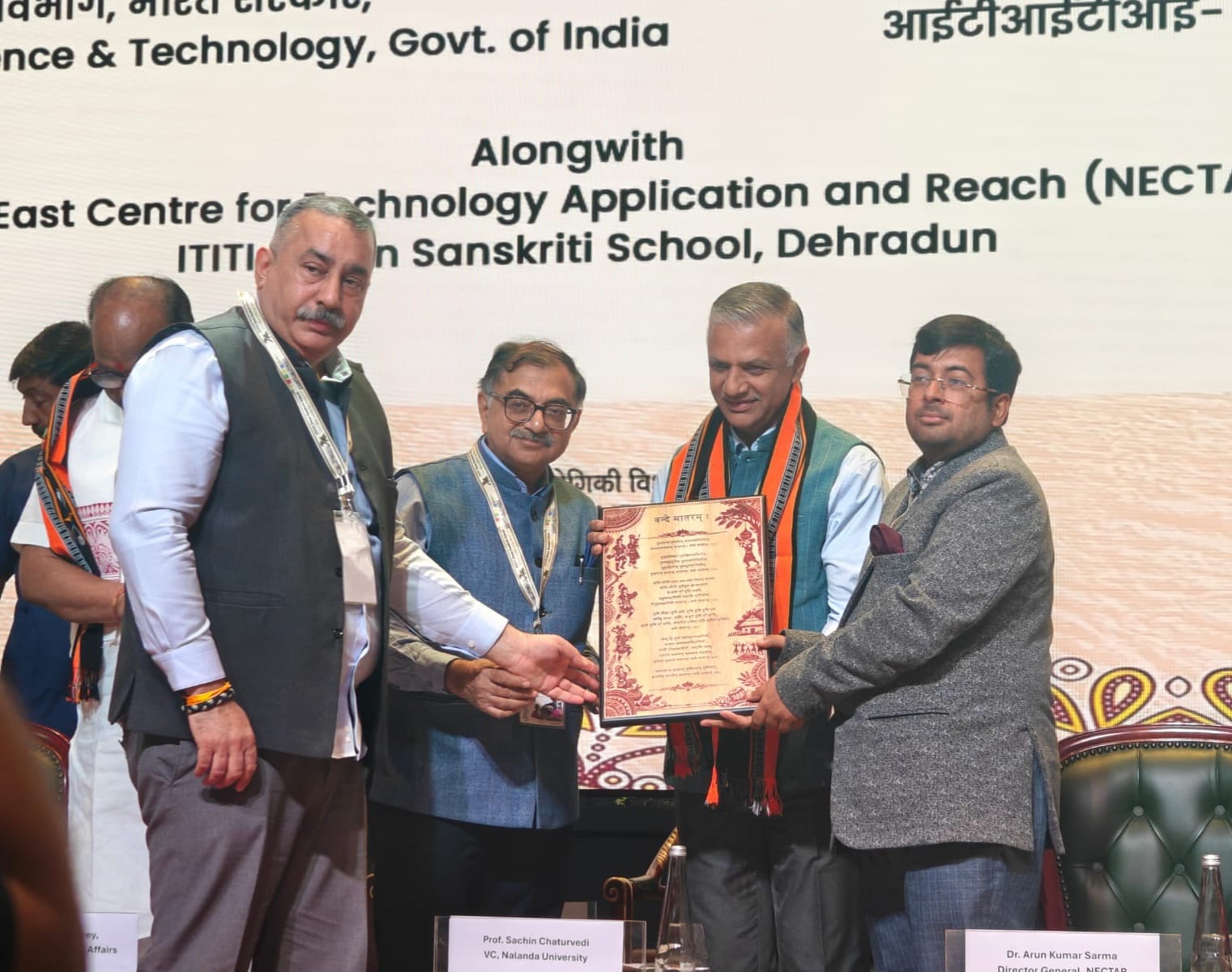 #ख़बरें Tv: राजगीर, नालंदा, बिहार (तारीख: 13 अप्रैल 2026): राष्ट्रीय नीति एवं विकास से जुड़े विमर्शों में अपनी सतत भागीदारी के क्रम में नालंदा विश्वविद्यालय ने नई दिल्ली स्थित भारत मंडपम में आयोजित द्विदिवसीय राष्ट्रीय सम्मेलन में सहभागिता की। “तकनीक और विज्ञान के जरिए जनजातीय भारत का परिवर्तन– अवसर, आकांक्षाएं, रास्ते” विषयक इस सम्मेलन का उद्घाटन भारत के उपराष्ट्रपति डॉ. सी. पी. राधाकृष्णन ने किया। कार्यक्रम का आयोजन भारत सरकार के विज्ञान एवं प्रौद्योगिकी विभाग द्वारा नॉर्थ ईस्ट सेंटर फॉर टेक्नोलॉजी एप्लीकेशन एंड रीच (NECTAR) एवं दून संस्कृति स्कूल, देहरादून के सहयोग से किया गया।