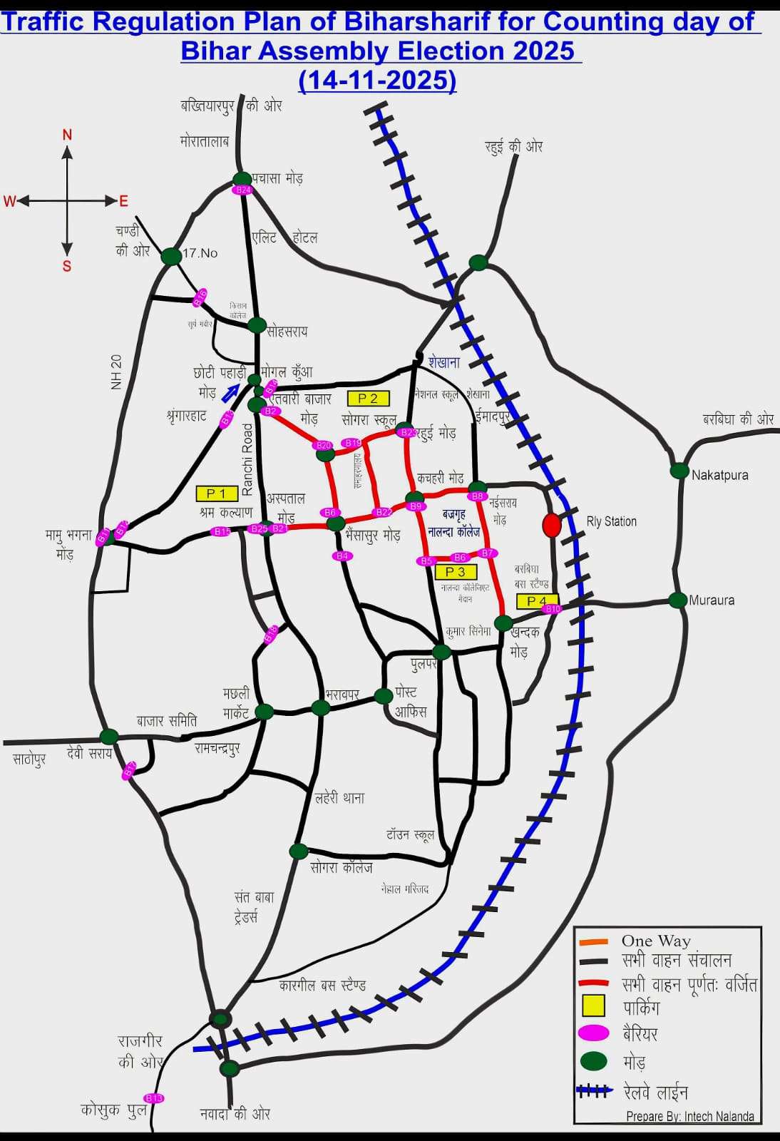 बिहार शरीफ में मतगणना के दिन सुबह 6:00 बजे से मध्य रात्रि तक यातायात रूट मैप तैयार…