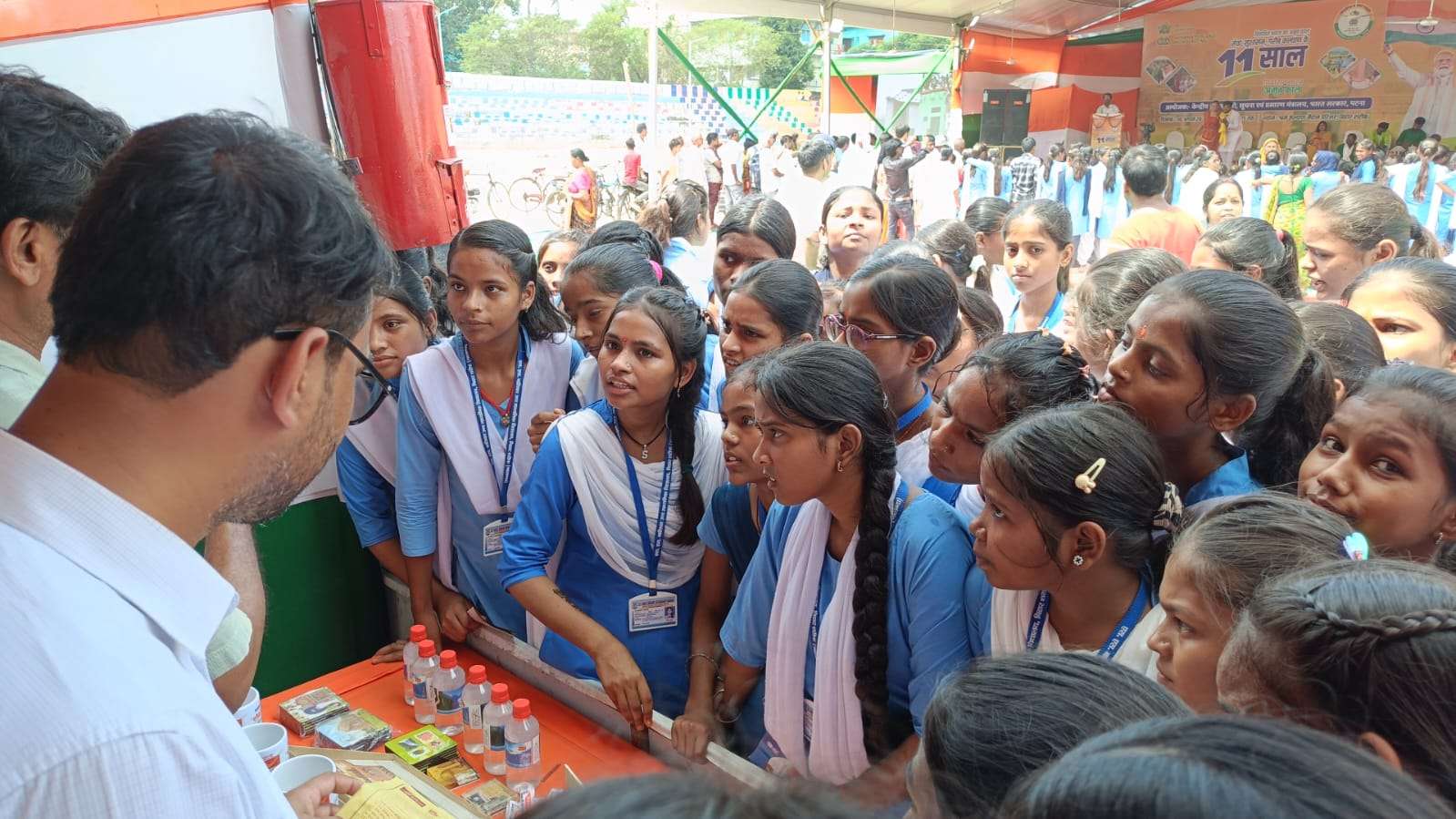 @ख़बरें Tv : विकसित भारत का अमृत कल सेवा सुशासन गरीब कल्याण के 11 साल के पूरे होने के उपलक्ष्य पर केंद्रीय संचार ब्यूरो,सूचना एवं प्रसारण मंत्रालय भारत सरकार पटना द्वारा स्थानीय श्रम कल्याण केंद्र के मैदान में आज चौथे दिन स्कूली छात्र छात्राओं की भारी भीड़ देखी गयी । जिसमें बच्चों नें चित्र प्रदर्शनी एवं काउंटरो पर घूम घूम कर ज्ञानवर्धक बातों एवं डाकघर की जानकरी ली। चित्र प्रदर्शनी सहित भारतीय डाक विभाग के सभी कल्याणकारी योजनाओं के काउंटर भीं पूर्व की भांति लगाए गए।